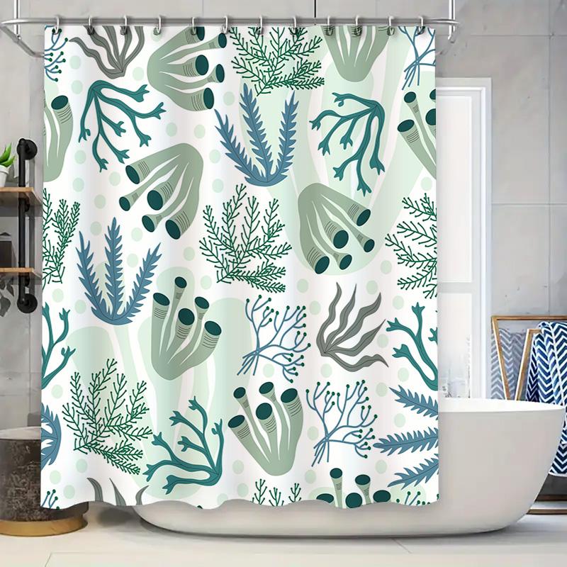 Underwater World Shower Curtain Decor Soft Fabric Printed Waterproof Bathroom Liner Set for Home Decoration Blue Green Color
