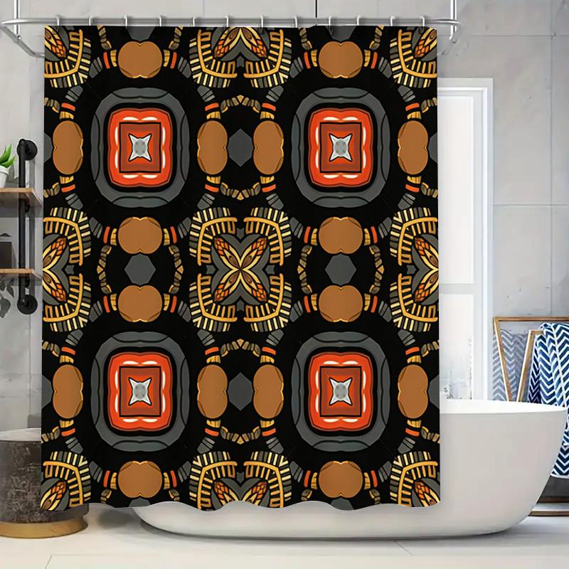 Decorative Shower Curtain Set with Unique Geometric Pattern for Bathrooms Waterproof Fabric, Various Sizes Available