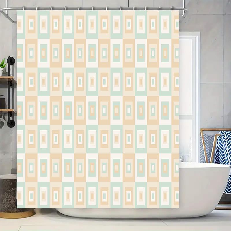 Modern Bathroom Shower Curtain Decorative Rectangular Geometric Pattern Waterproof Washable Home Decor (Beige Mint) One Size