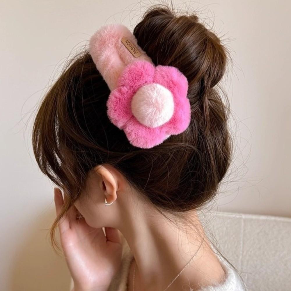 Fashion Plush Flower Hair Clip Sweet Duckbill Clip Headwear Accessories Back Head