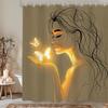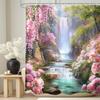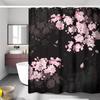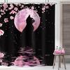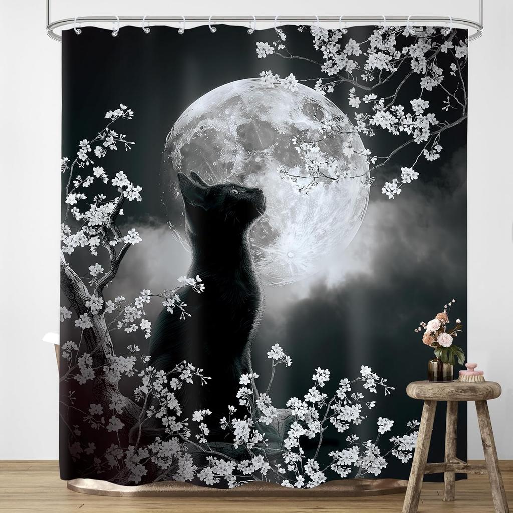 Czarny Kot Księżyc Zasłona Prysznicowa Mistyczna Noc Kwiat Wiśni Kwiatowy Gotycki Nowoczesny Estetyczny Tkanina Wodoodporny Poliester