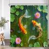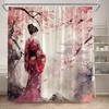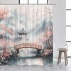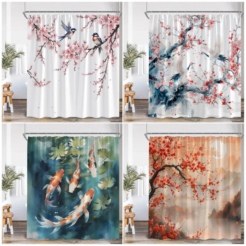 Zasłona Prysznicowa w Stylu Japońskim Różowe Kwiaty Wiśni Kwiatowy Biały Żuraw Góra Karp Koi Sceneria Malowana Tuszem Nowoczesny Wystrój Zasłony Łazienkowej
