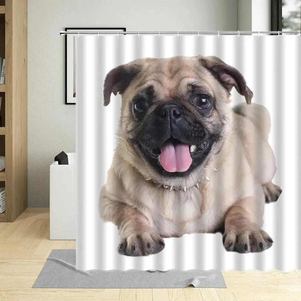 Creative Pug Funny Puppy Dog Pattern Shower Curtain Waterproof Polyester Fabric Bath Curtains Pet Shop For Home Decor With Hooks