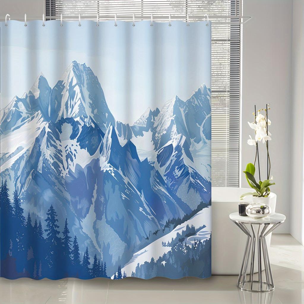 1pc modern abstract snow mountain range pine forest winter snowy scenery shower curtain, decorative printed bath curtain