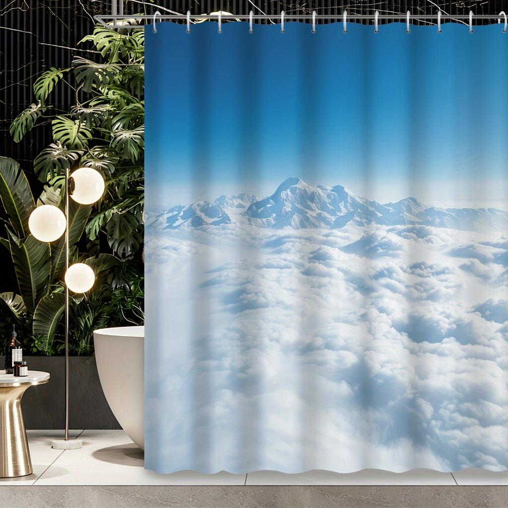 1pc Serene Mountain & Cloud Landscape Shower Curtain - Polyester, Washable, Grommet Top with Hooks, All-Season Decor for Bathroo