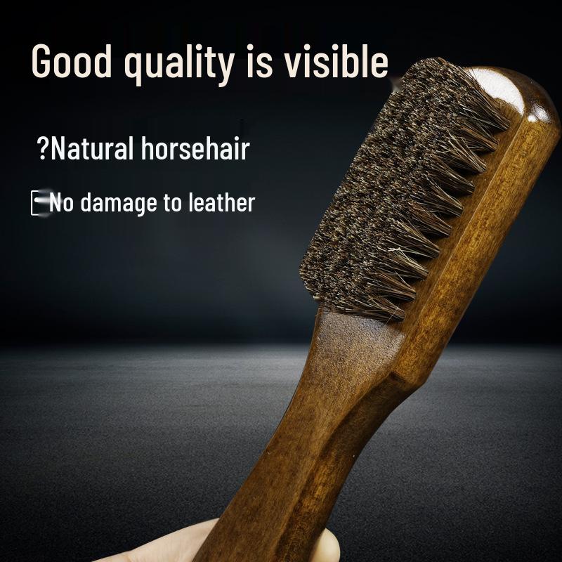 Retro Shoe Brush with Soft Horsehair Bristles for Polishing and Dust Removal on Leather Shoes - Durable Solid Wood Handle