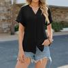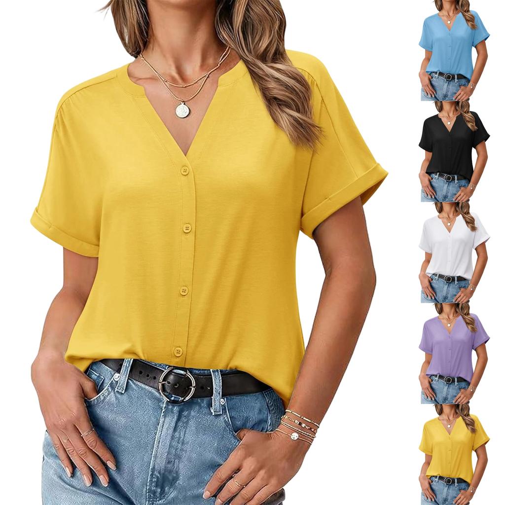 Women's Fashionable Casual Button-Down Collar Shirt, Cute Short-Sleeved V-Neck Summer Beach Vacation Top