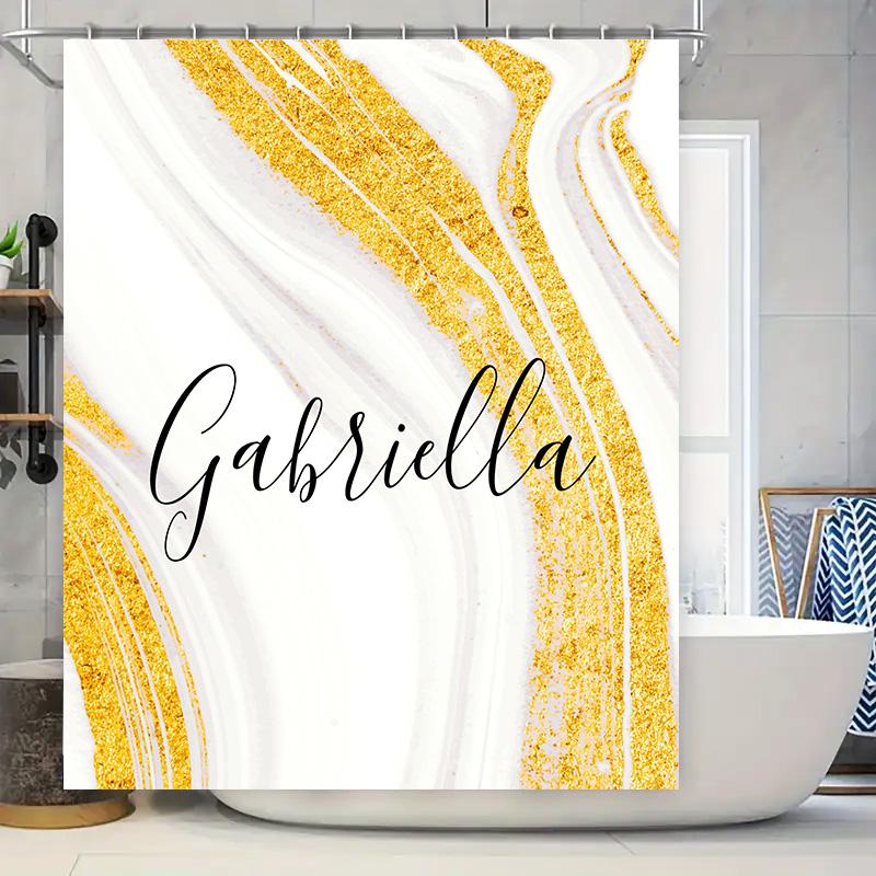 Gold Marble Shower Curtain Personalized Name Custom Bathroom Decorative Window Coverings for Home Decoration White/Gold Colorway
