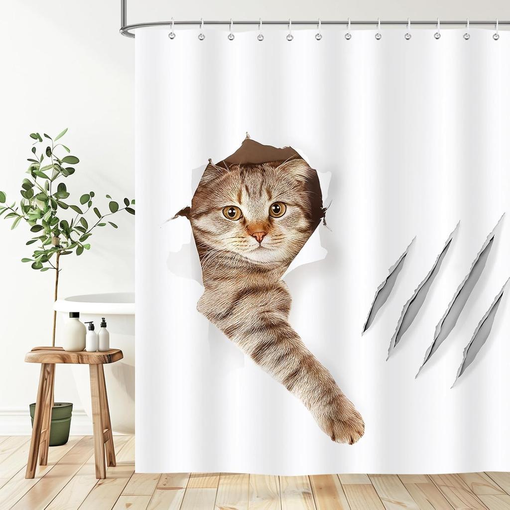 Funny Cat Shower Curtains 72 x 72 inch,Bathing Cat Waterproof Polyester Fabric Bathroom Curtain with 12 Hooks