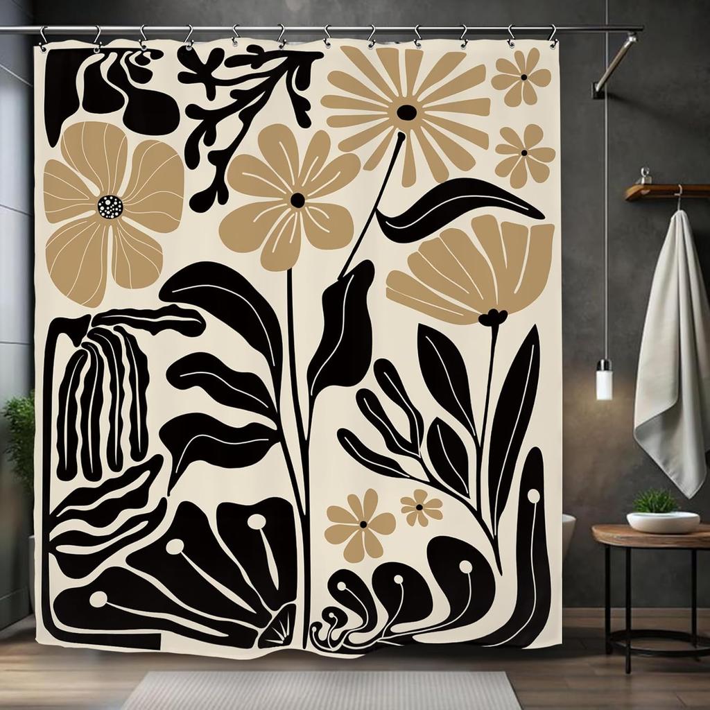 Black and Beige Abstract Flower Pattern Waterproof Shower Curtain 180x200cm Modern Art Print Bath Curtain for Living Room Decor