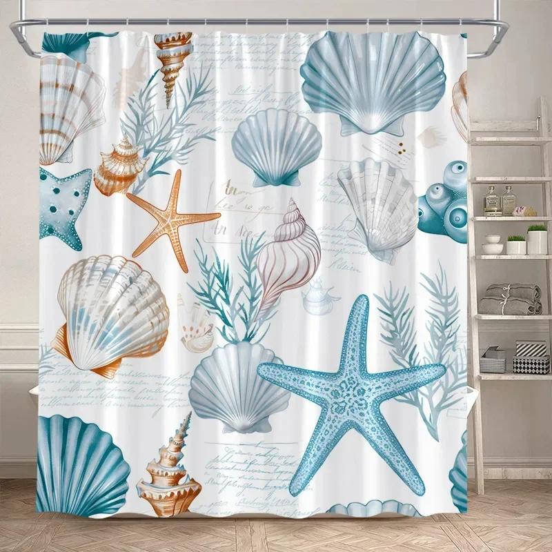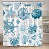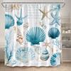 Marynistyczne Oceaniczne Zasłony Prysznicowe Niebieska Muszla Muszla Ślimaka Wodorosty Rozgwiazda Zestaw Zasłon do Łazienki Poliestrowa Tkanina Wystrój Łazienki z Haczykami
