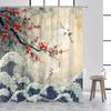 Tuszowy Krajobraz Zasłona Prysznicowa Fale Morskie Żuraw Karp Koi Góra Wodospad Roślina Kwiatowa Dekoracja Zestaw Zasłon Łazienkowych