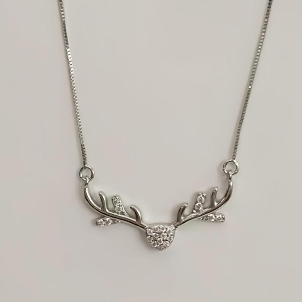 Korean Style Elegant Deer Antler Heart Necklace for Women with Shiny Zirconia
