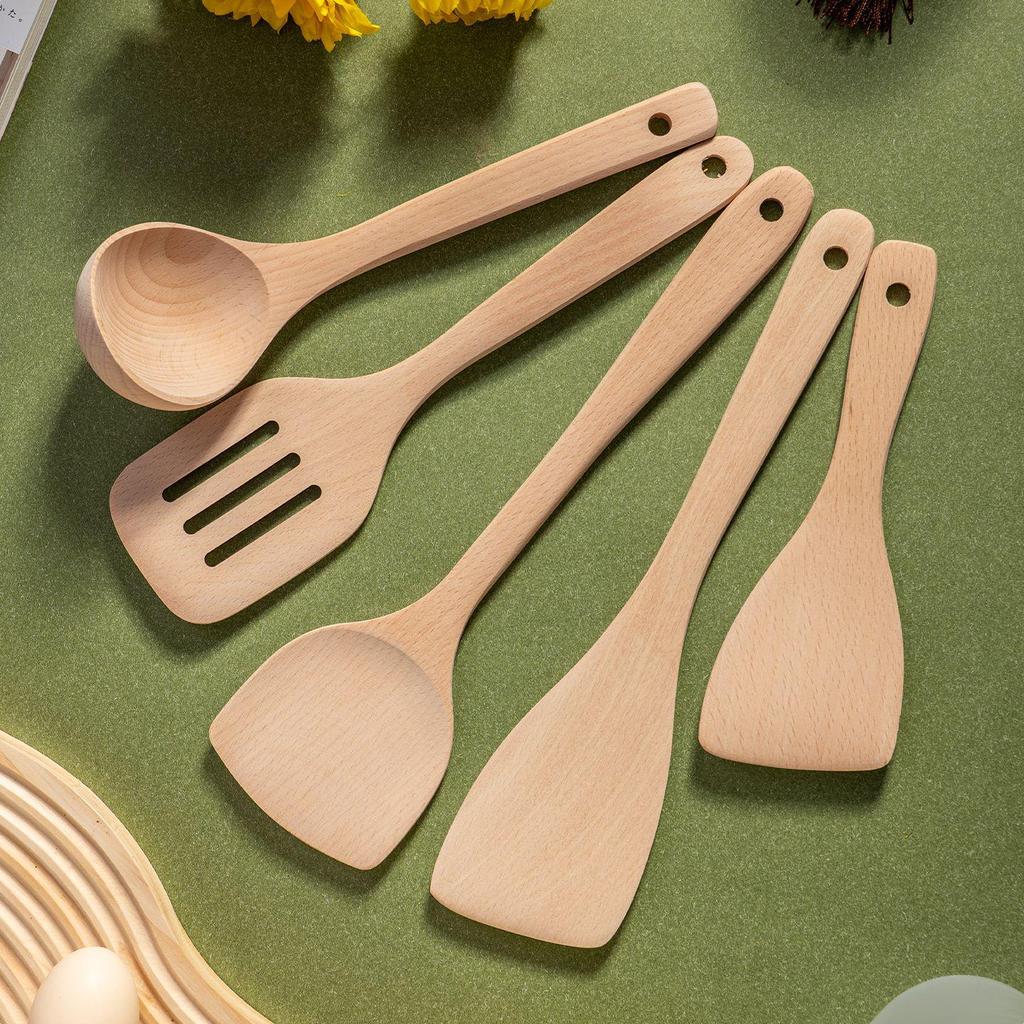 Beech Wood Long Handle Cooking Spatula Set - Unpainted & Unwaxed, Includes Large Porridge & Oil Spoon, Ideal Household Gift