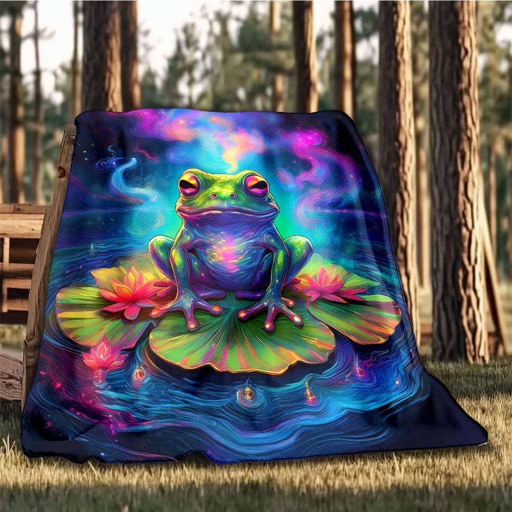 1pc Frog Printing Lightweight Flannel Blanket, Comfortable and Warm Blanket, for Camping Sofa Bed and Couch Office, Suitable for Gift Blanket
