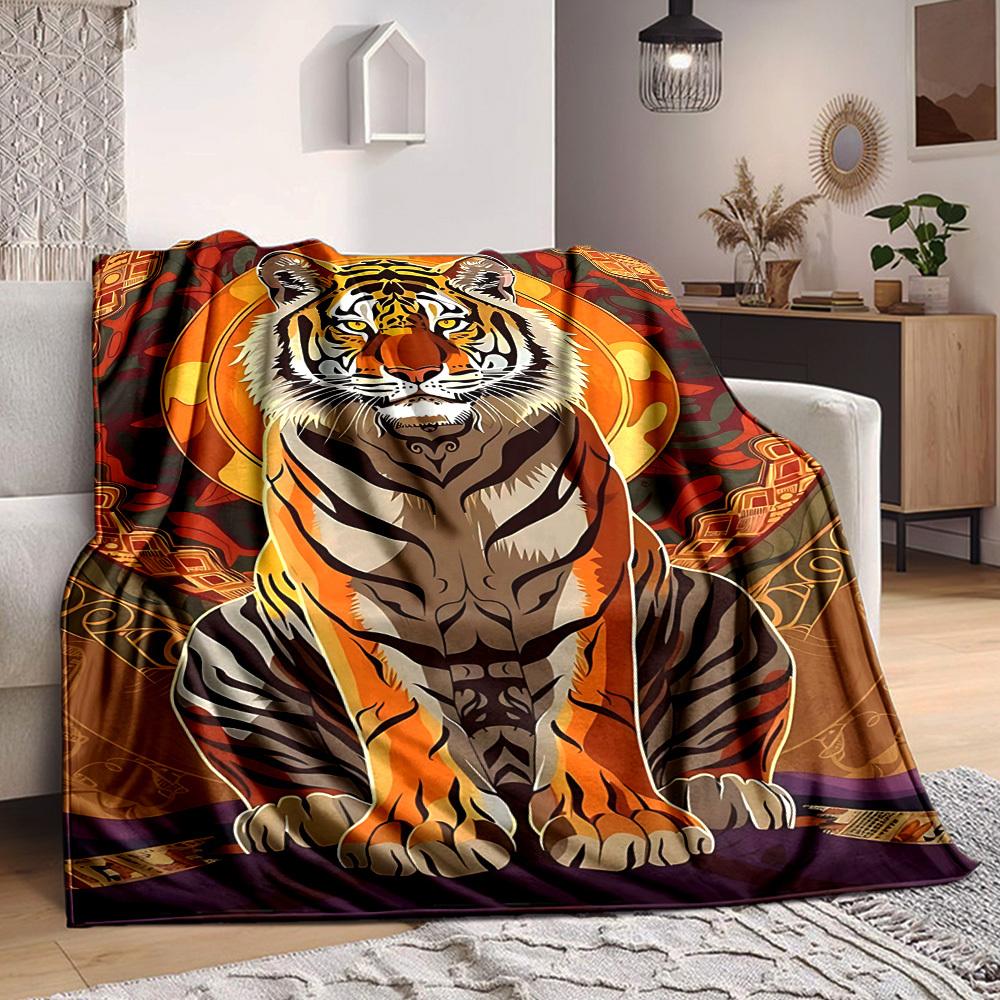 1pc Tiger Print Blanket, Lightweight Flannel Fleece with Digital Printing, Soft Warm for Sofa, Travel, Camping, Office, Couch, Chair, and Bed, All-Sea