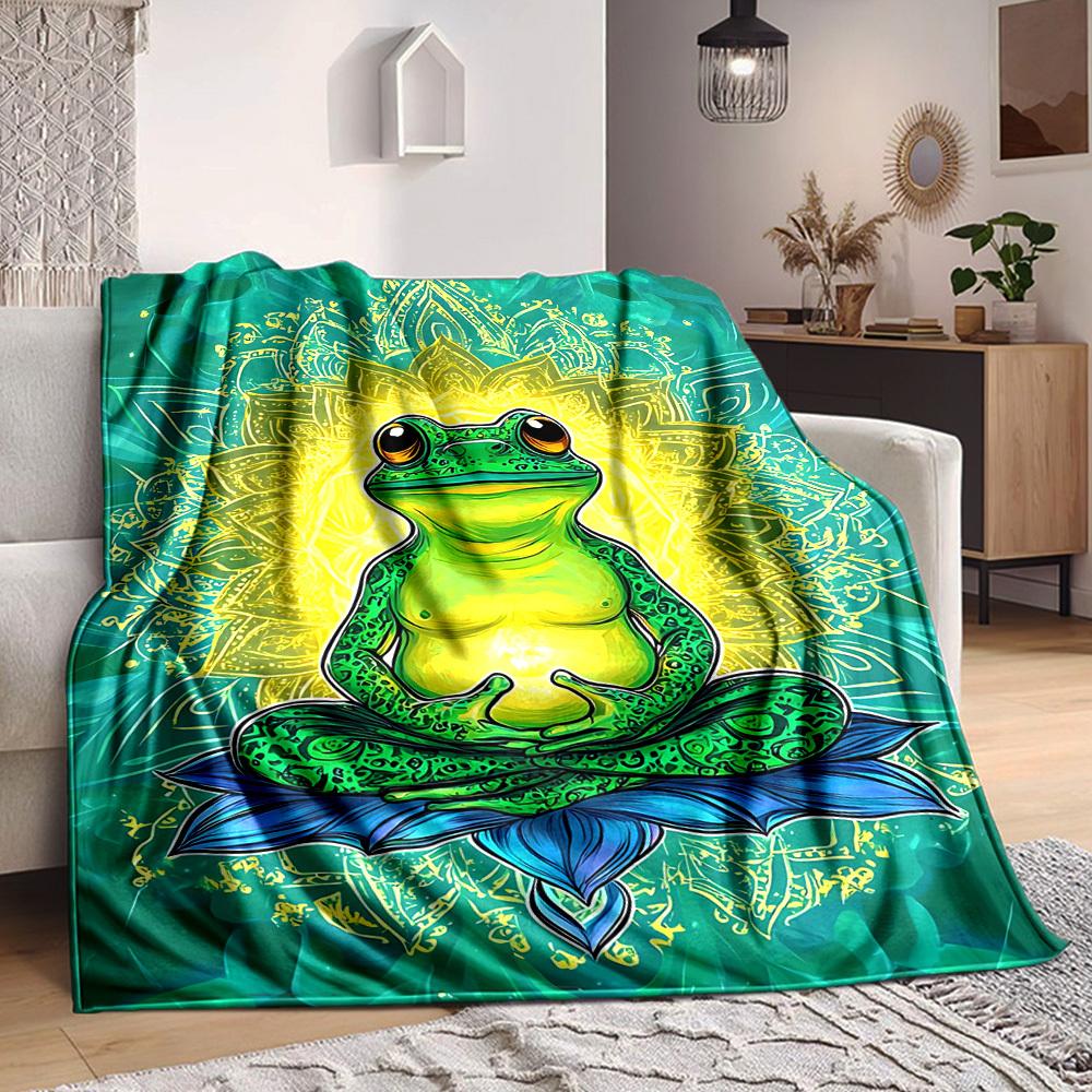 1pc Meditation Frog Blanket Lightweight Flannel Blanket Throw Blanket For Sofa, Bed, Travel, Camping, Livingroom, Office, Couch, Chair, And Bed yy2510