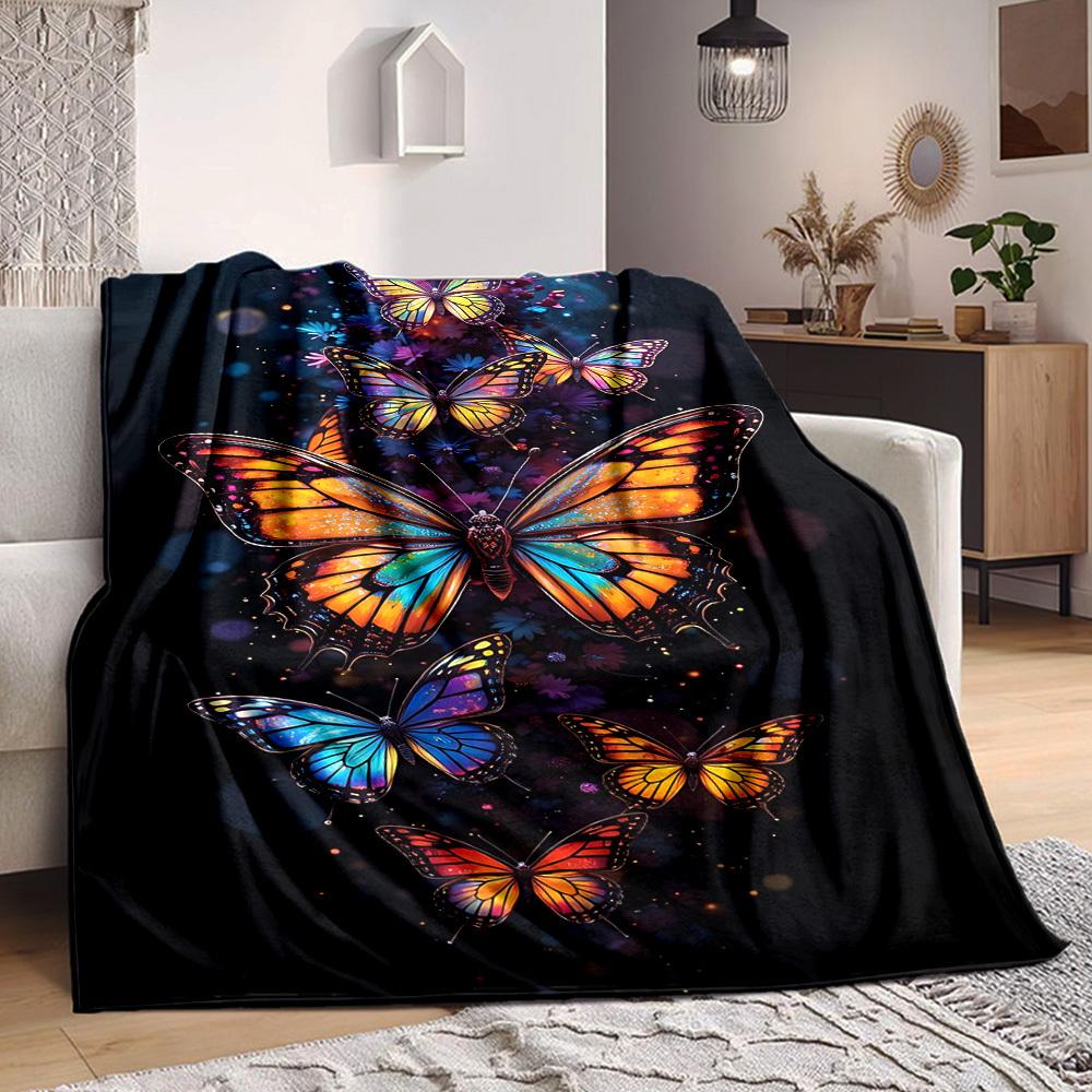 1pc Butterfly Print Blanket Lightweight Flannel Blanket Throw Blanket For Sofa, Bed, Travel, Camping, Livingroom, Office, Couch, Chair, And Bed yy2510