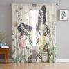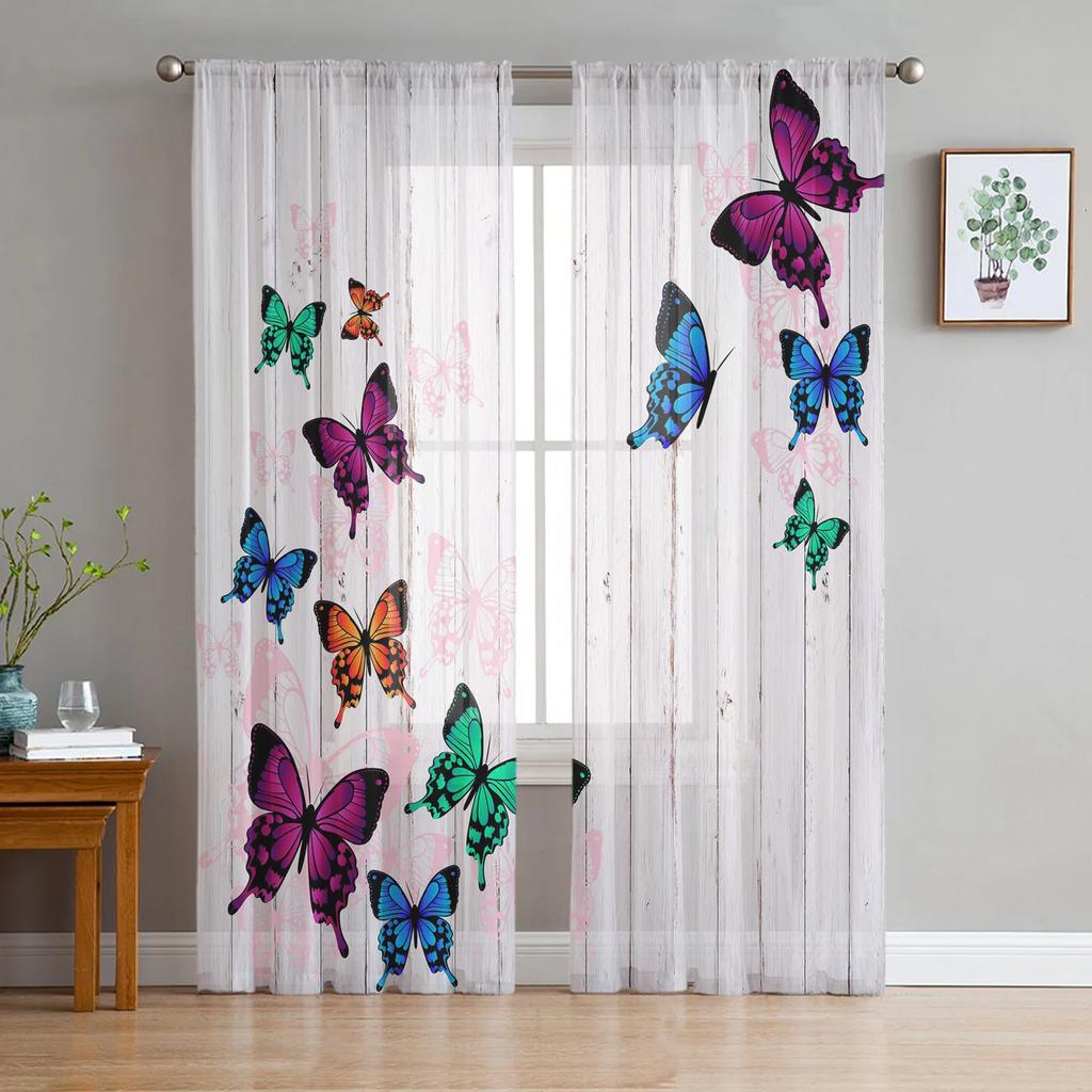 Wood Grain Retro Colorful Butterfly Chiffon Curtains Living Room Bedroom Home Decoration Window Voiles Tulle Curtain Light Filtering Polyester