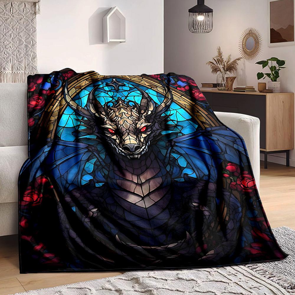 1pc Dragon Stained Art Blanket Lightweight Flannel Blanket Throw Blanket For Sofa, Bed, Travel, Camping, Livingroom, Couch, Chair, And Bed yy250902613