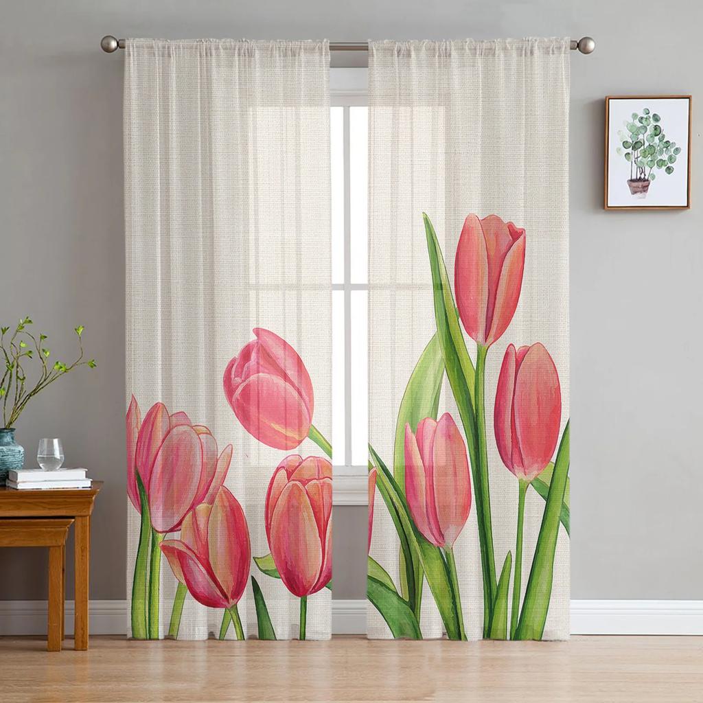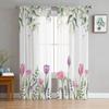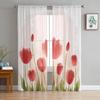 Spring Tulips Easter Mother Day Flowers Tulle Curtains Living Room Home Kitchen Decor Bedroom Window Drapes Light Filtering Made Of Polyester Sitting