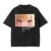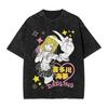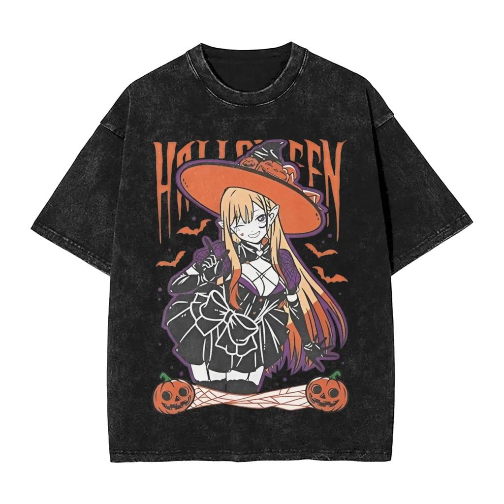 Anime Halloween Witch Girl "HALLOWEEN" Graphic Vintage Acid Washed Oversized Streetwear Y2K Manga T-Shirt Top for Anime Lovers Halloween Fans