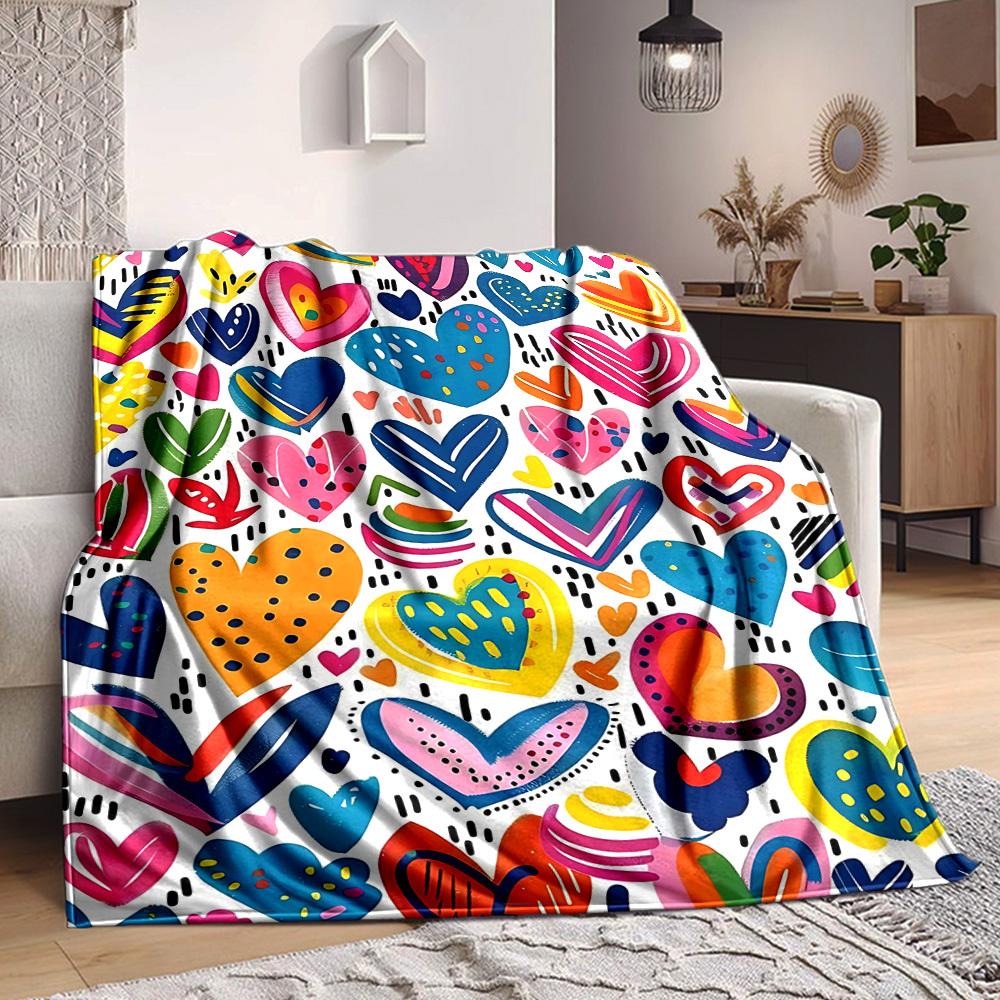 1pc Colorful Hearts Blanket Warm, Cozy, And Soft, Suitable for Sofas, Beds, Cars, And Office Use.Perfect for Camping And Travel, Making It a Great Gif