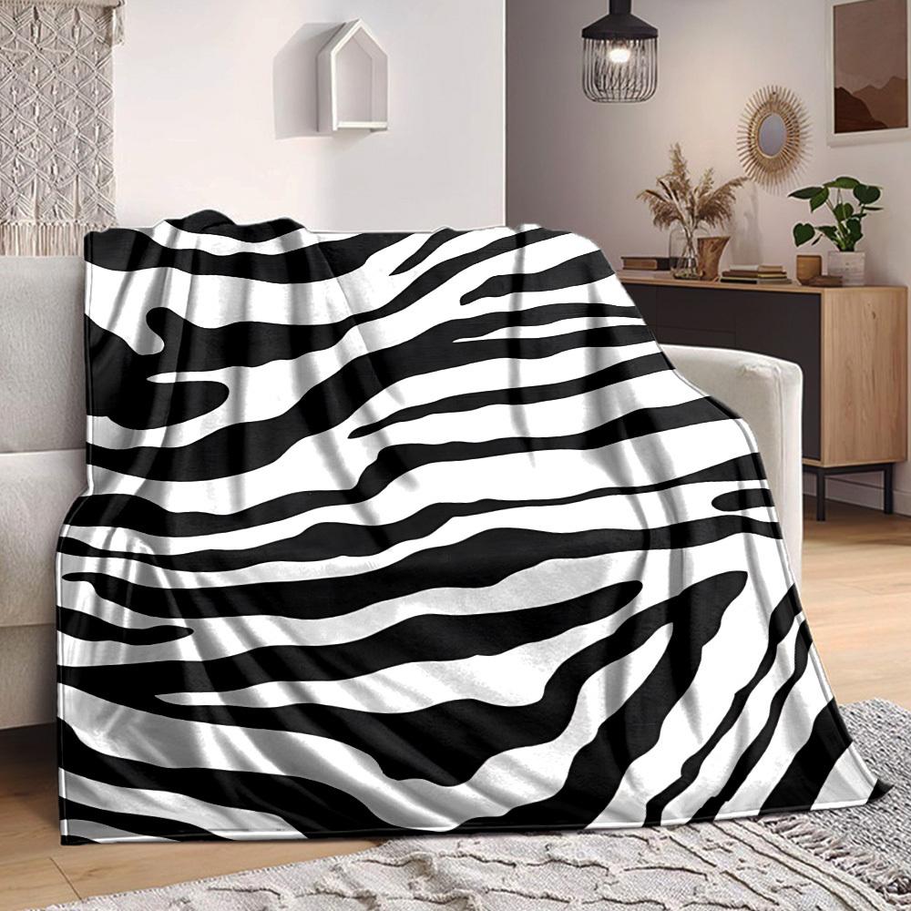 1pc Zebra Print Blanket Warm, Cozy, And Soft, Suitable for Sofas, Beds, Cars, And Office Use.Perfect for Camping And Travel, Making It a Great Gift fo