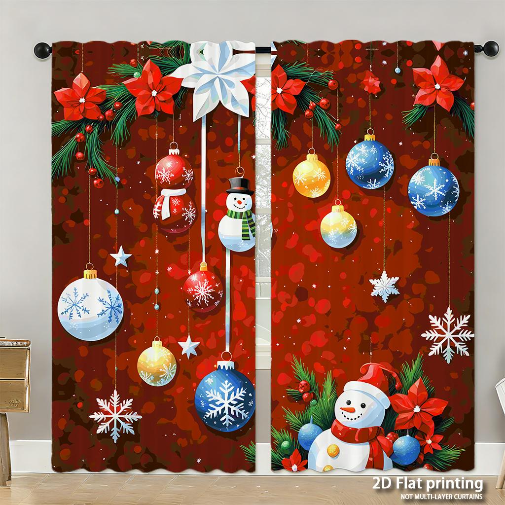 Piece Set High Definition Digital Printed Curtainsred Background Christmas Ornaments Snowman Festive Holiday Decorhome Deco Curtain Made Of Polyester