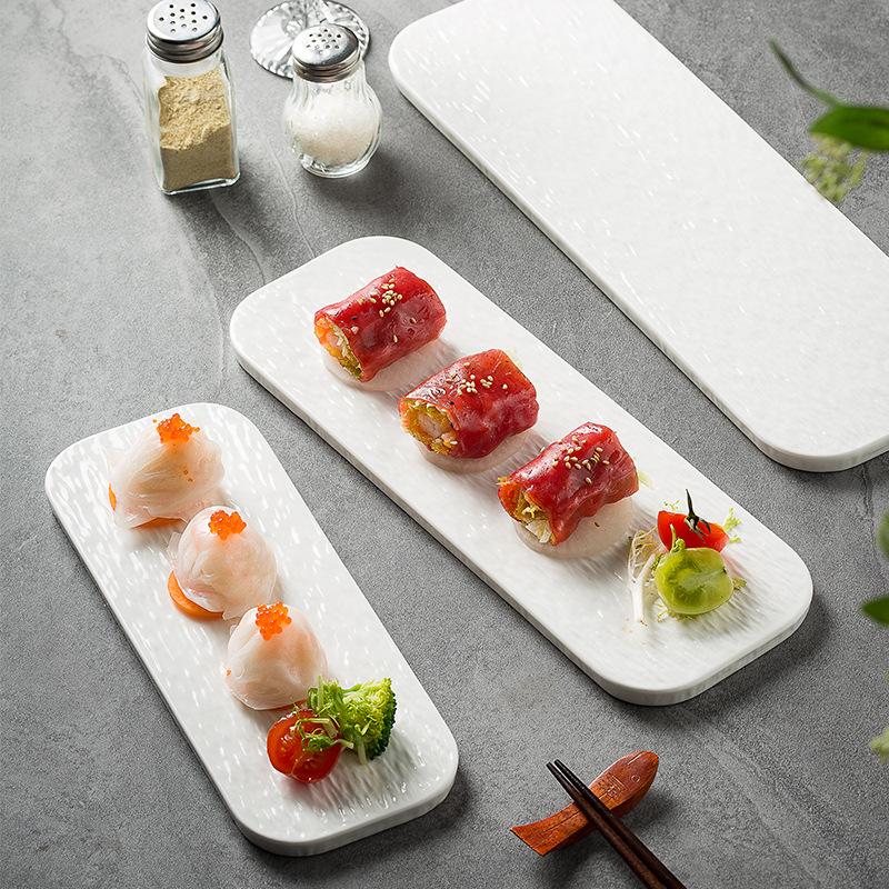 Pure White Rock Pattern Rectangular Flat Ceramic Strip Plate High-End Sushi Plate Restaurant Sashimi Plate Dim Sum Plate
