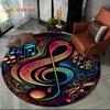 Kreskówkowy Kolorowy Nuta Muzyczna Partytura Okrągły Dywanik Dywan do Dekoracji Salonu Sypialni Pokoju Dziecięcego, Dywanik do Strefy Zwierząt Antypoślizgowa Mata