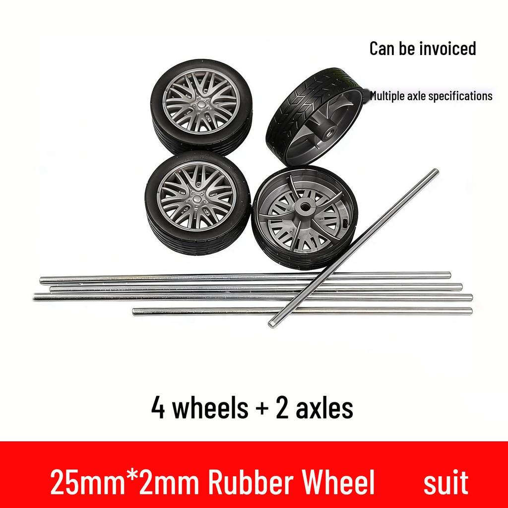 25x2mm Black Rubber Wheel Toy Car Axle Set for Model Assembly