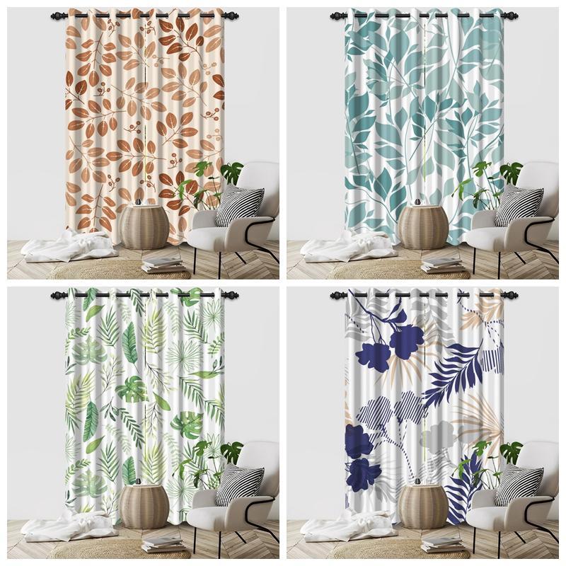 Set Of 2 Botanical Leaf Pattern Curtain Tropical Floral Design Living Room Bedroom Window Hotel Home Textile Drapes Light Blocking For Sitting Made