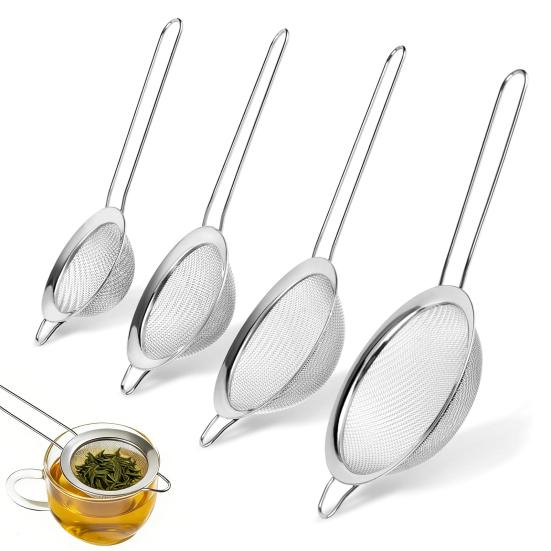 Wszechstronne rozmiary do każdego zadania w kuchni: Ten zestaw zawiera cztery sitka o różnej wielkości oczek, oferując wiele możliwości przechowywania i użytkowania, dostosowanych do różnych potrzeb kulinarnych.. Niezależnie od tego, czy przesiewasz mąkę, czy cedzisz płyny, te filtry nadają się do różnorodnych zastosowań z precyzją i łatwością. Szeroki zakres rozmiarów ułatwia wybór idealnego narzędzia do pieczenia, gotowania lub przygotowywania posiłków.