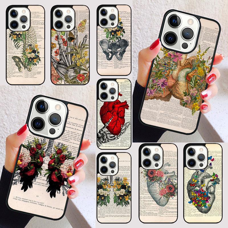 Vintage Anatomy Heart Brain Nurse Phone Case for iPhone 17 Air 16 16e 15 Plus for Apple 13 11 12 14 Pro Max Cover coque