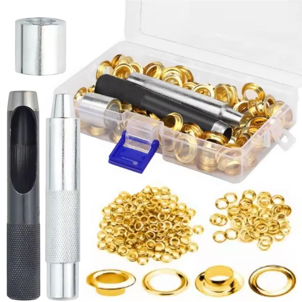 FIXTOOL GOLDSET 12MM PROKIT – ZŁOTY ZESTAW 100 OCZEK DO PLANDEK Z DZIURKACZEM I ZAKUWAKIEM