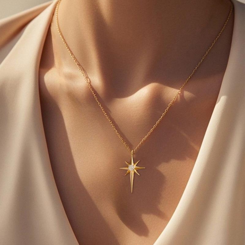 Elegant Six-Pointed Zircon Star Necklace with Rhinestones