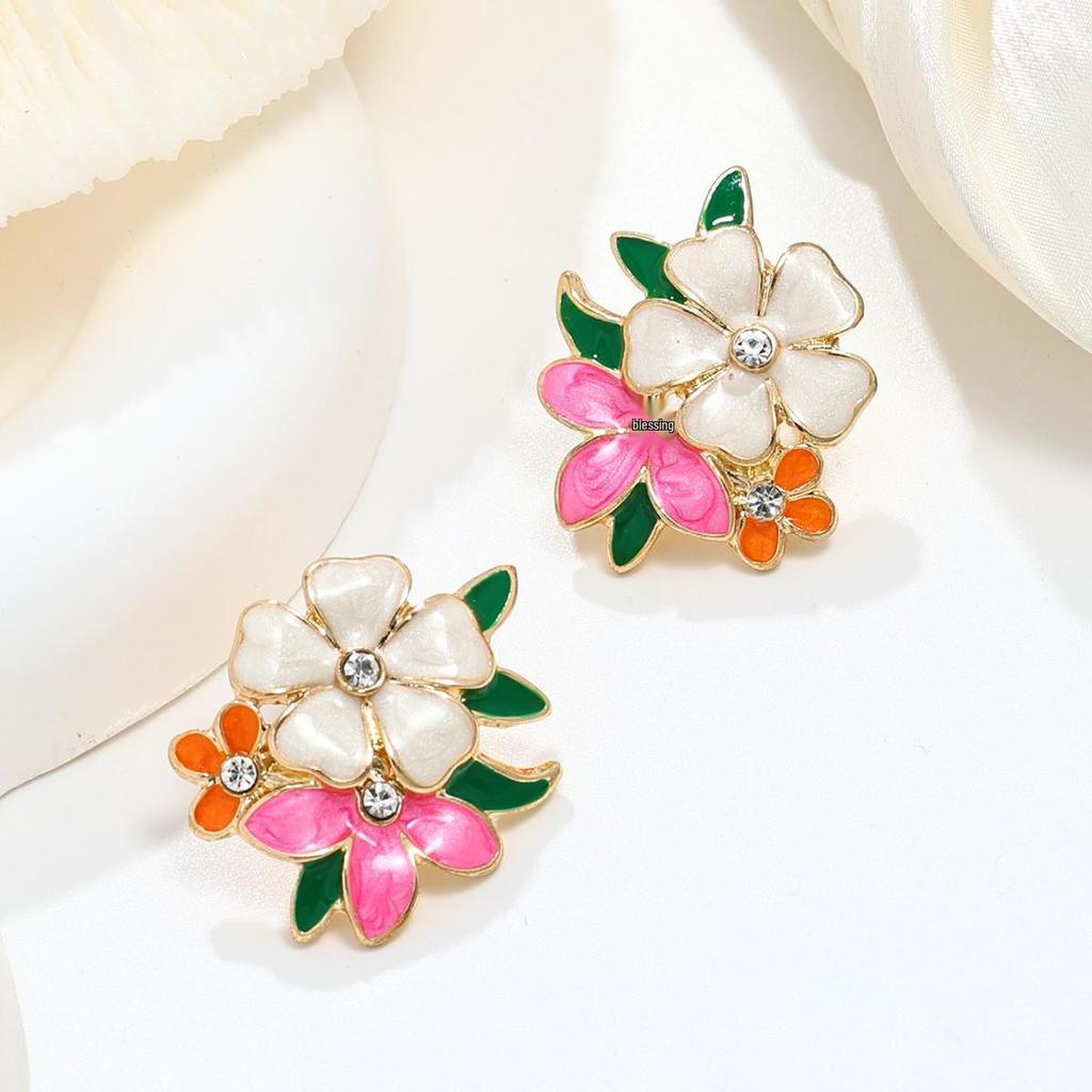 Mori Style Camellia Colorful Drip Oil Flower Earrings - Elegant Artistic Studs for Women