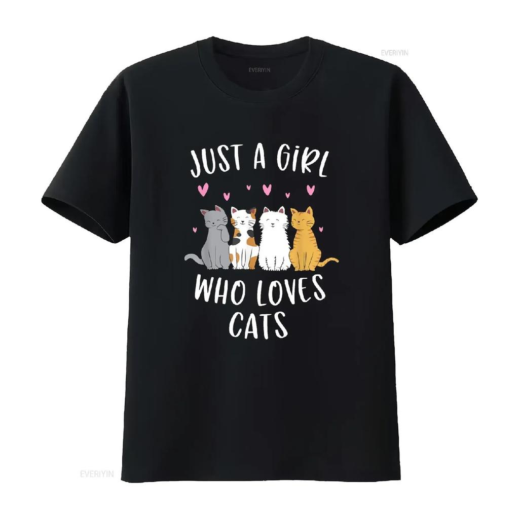 Just A Girl Who Loves Cats Cute Cat Lover T Shirt vintage Washed designer clothes Slightly Casual Breathable homme fashion