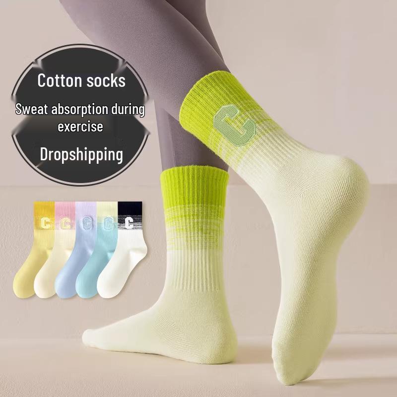 Women's Pure Cotton Mid-Calf Socks: Breathable, Sweat-Absorbing, Ideal for Running, Jump Rope, and Casual Sports. Perfect for Spring and Autumn.