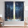 Contemporary Starry Night Forest Moon Print Curtains Polyester Semi Panels Bedroom Living Room Sheer Set Of 2 Made With Rod Pocket Area Decor