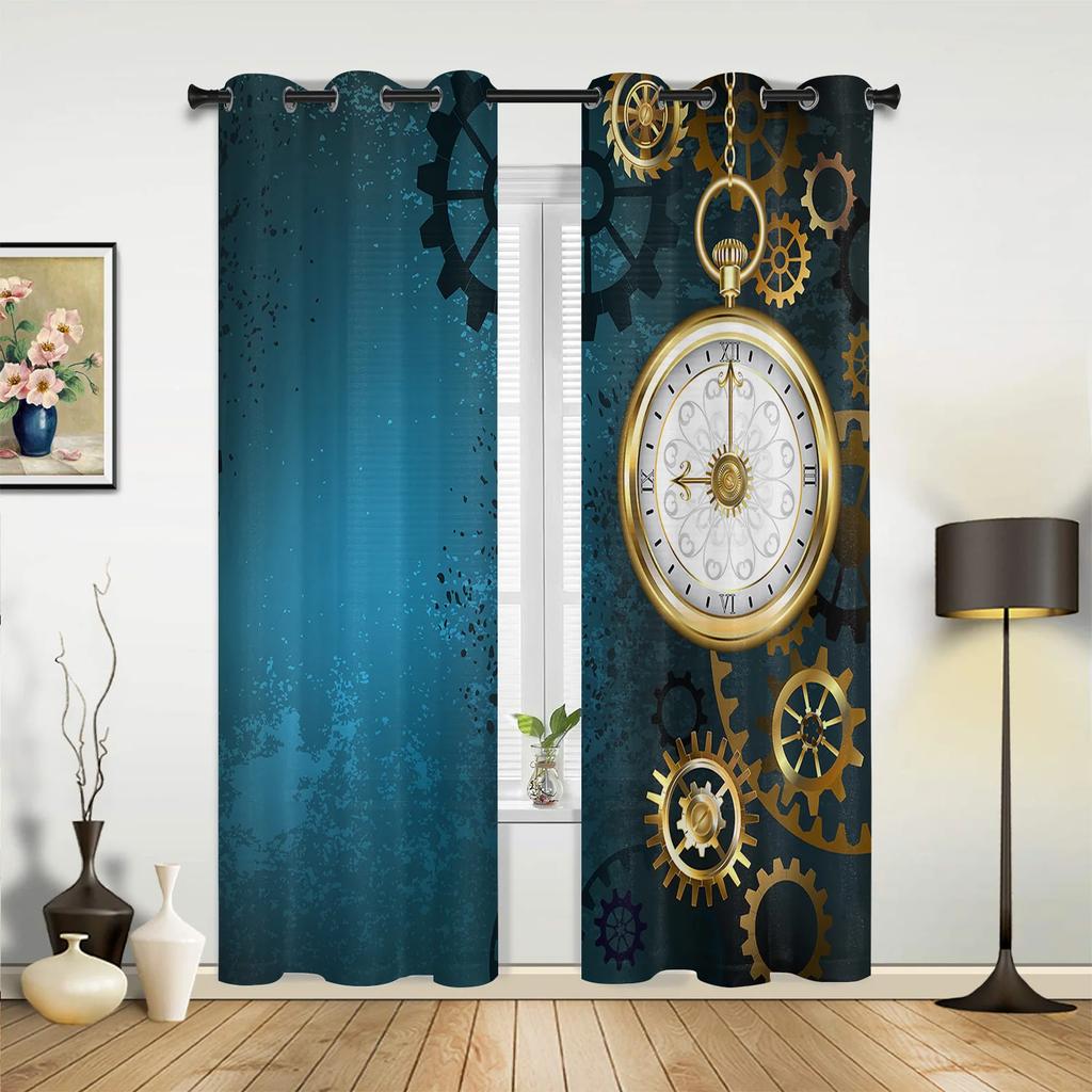 Retro Mechanical Gear Clock Blue Hall Curtains Living Room Kitchen Boy Girl Bedroom Long Window Curtain Cortinas Home Decor Polyester Ideal For
