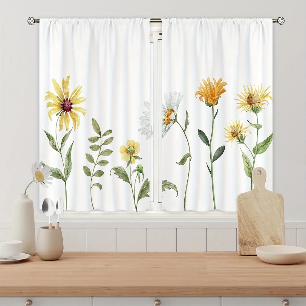 Farmhouse Panel Set Yellow Sunflower Kitchen Curtains Decor Gifts Short Cafe Rustic Country Small Window Made Of Polyester