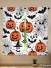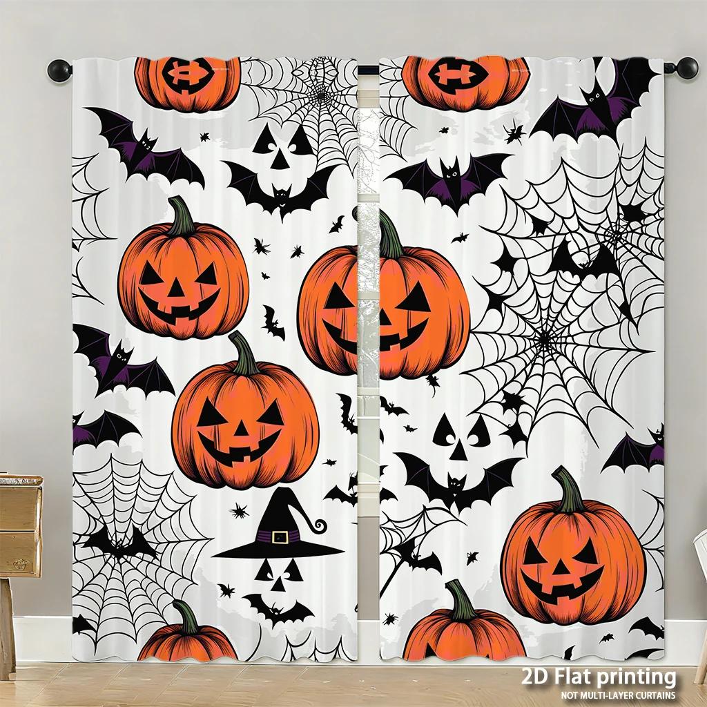 Piece Set High Definition Digital Printed Curtainshalloween Orange Pumpkins Black Bats Spiderwebs Witchhat Patternhome Deco Curtain Made Of Polyester