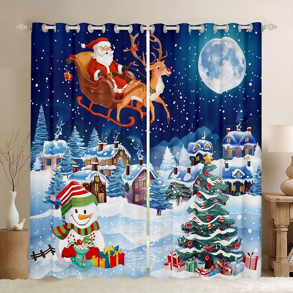 Blackout Christmas Tree Curtain Cute Santa Claus Living Room Decor Cartoon Snowman Window Curtains Drape Made Of Polyester Washable Sitting Ready