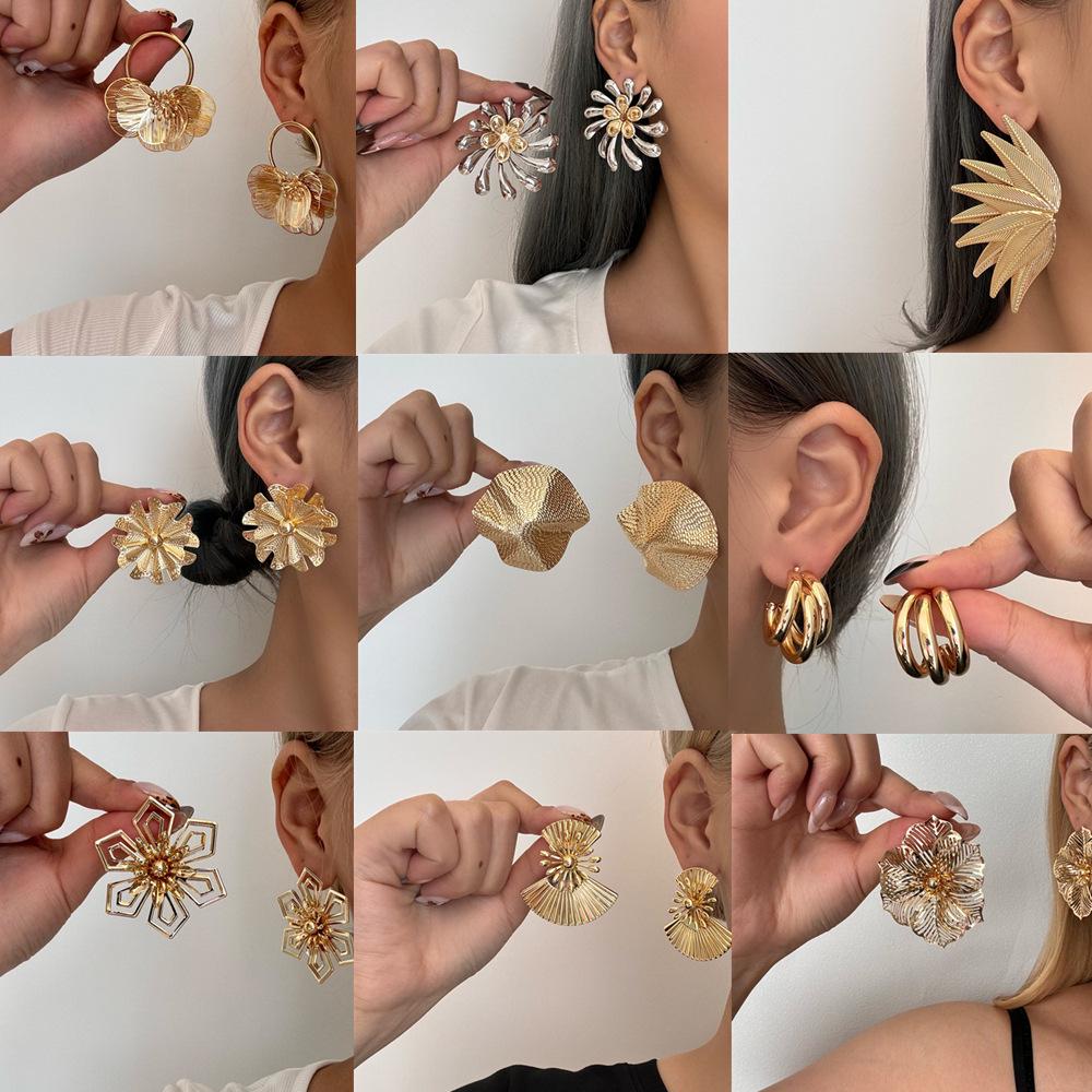 European & American Stylish Irregular Flower Stud Earrings for Women's Elegant Personality