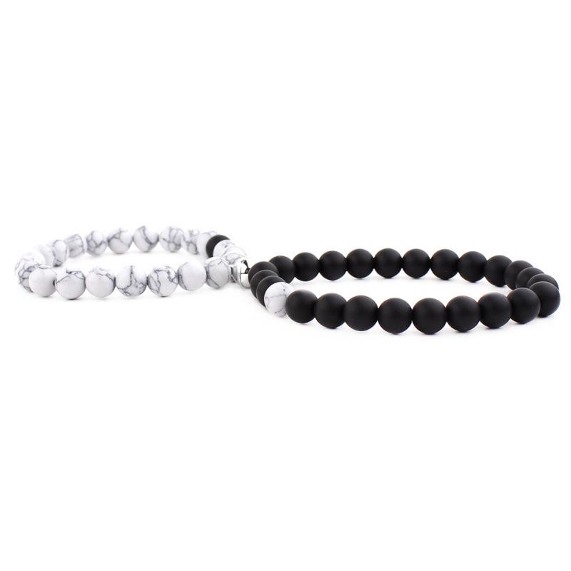 Bransoletka z koralików w stylu europejskim i amerykańskim - Biały turkus i zapięcie magnetyczne dla par