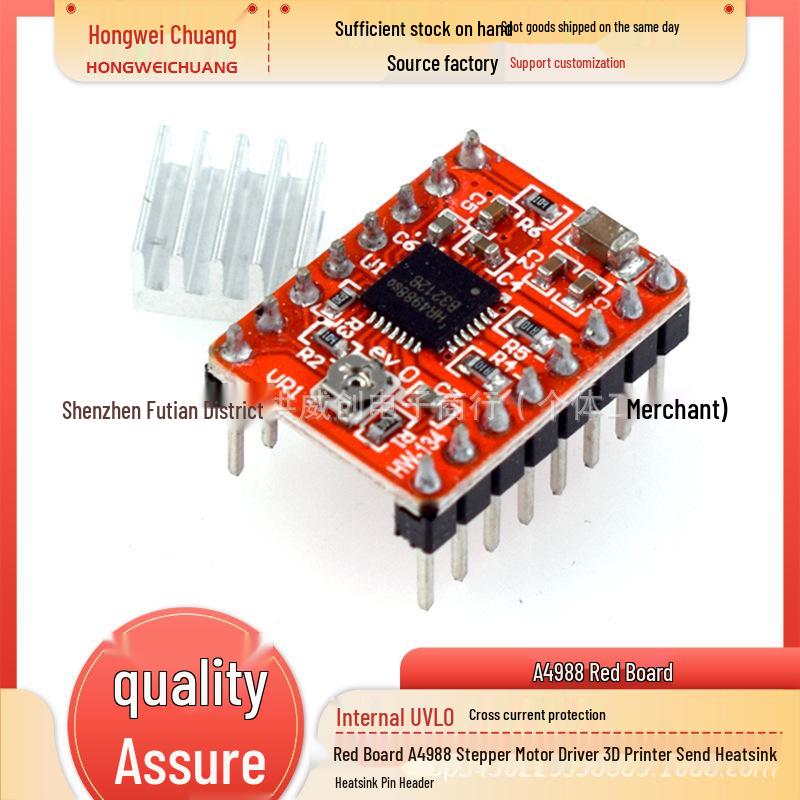 Czerwony sterownik silnika krokowego A4988 do drukarek 3D z radiatorem i złączami pinowymi