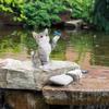 Statua kota ogrodowego zasilana energią słoneczną Wodoodporna Statuetka kotka
