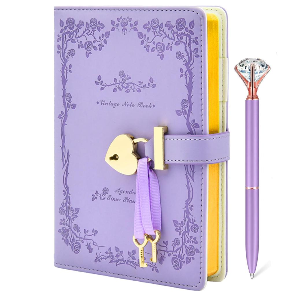 Lockable B6 Size Cute PU Leather Diary with Student Stylish School Gift for Elementary School Girls Notebook, Diary, Lock, Refillable, Diary,